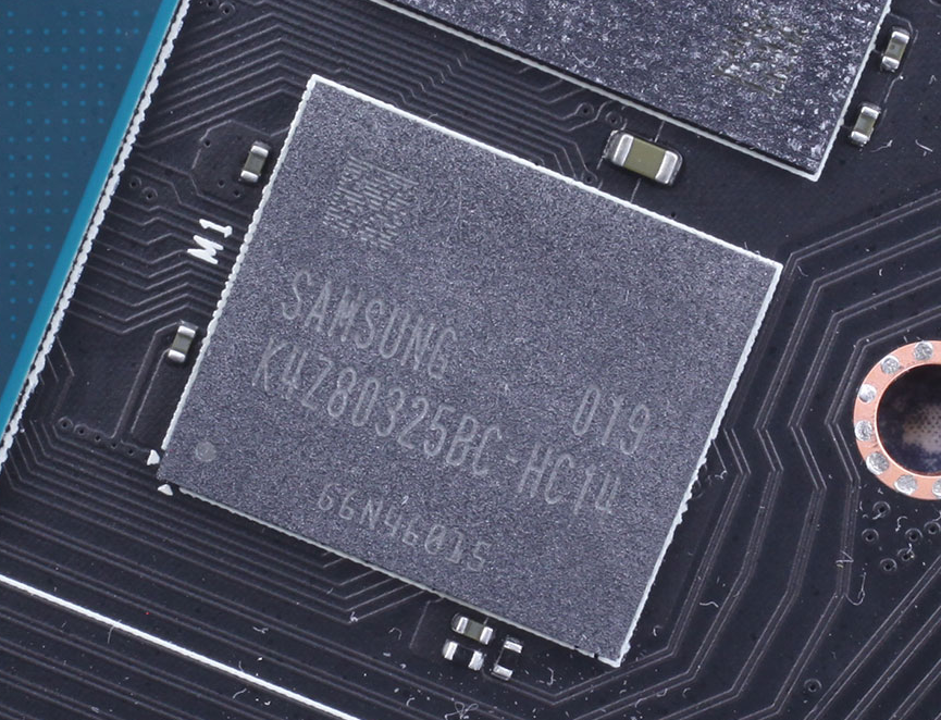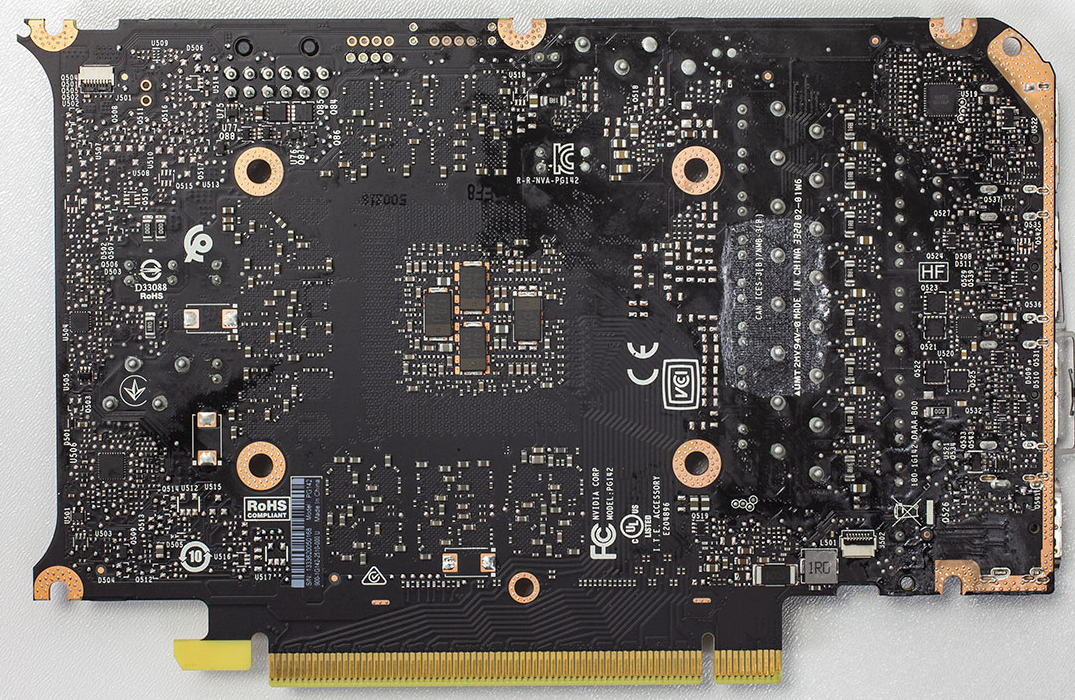 Чипы памяти GDDR6 поставляются компанией Samsung и имеют номер модели «K4Z80325BC-HC14». Они предназначены для работы на частоте 1750 MHz (эффективная GDDR6 14 Gbps).