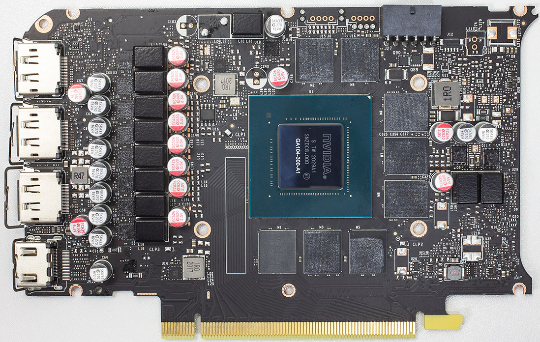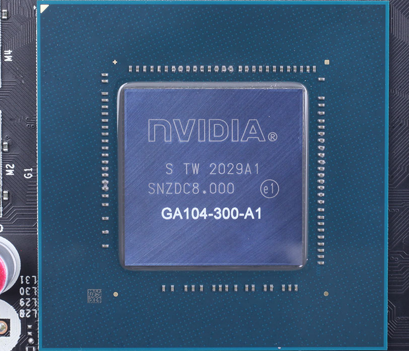 GPU NVIDIA GA104 — это третий чип с архитектурой Ampere компании, второй, предназначенный для геймеров GeForce. Он производится в Samsung по 8-нанометровому процессу, имеет 17,4 миллиарда транзисторов и размер кристалла 392 мм².