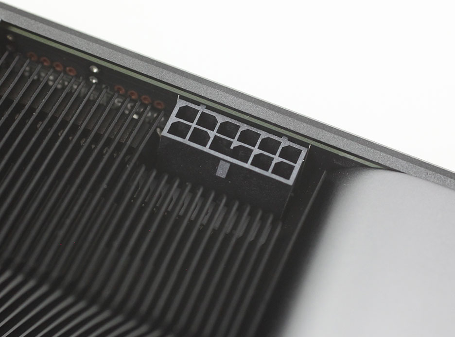 NVIDIA также сохранила компактный 12-контактный вход питания, несмотря на то, что потребление всего около 220 Вт (150 Вт от 12-контактного + 75 Вт от слота PCIe). На наш взгляд было бы достаточно одного 8-контактного разъема.