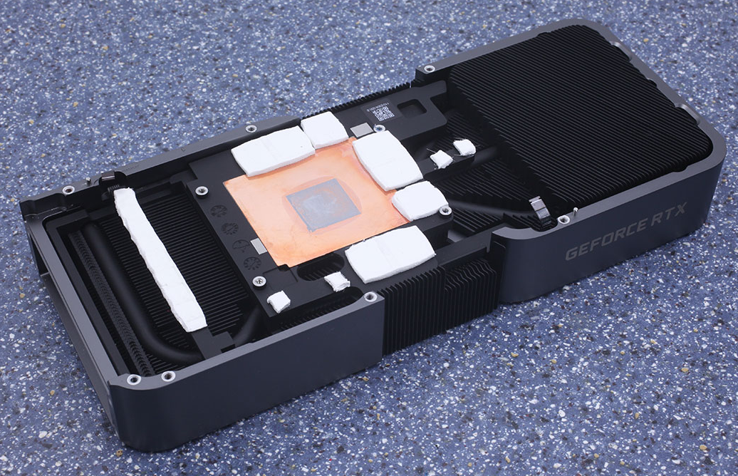 Внутренняя система охлаждения NVIDIA имеет большое медное основание с четырьмя тепловыми трубками