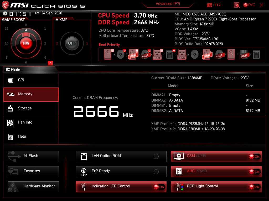 При первом включении память запустилась при базовом режиме работы DDR4-2666 сразу в двухканальном режиме.