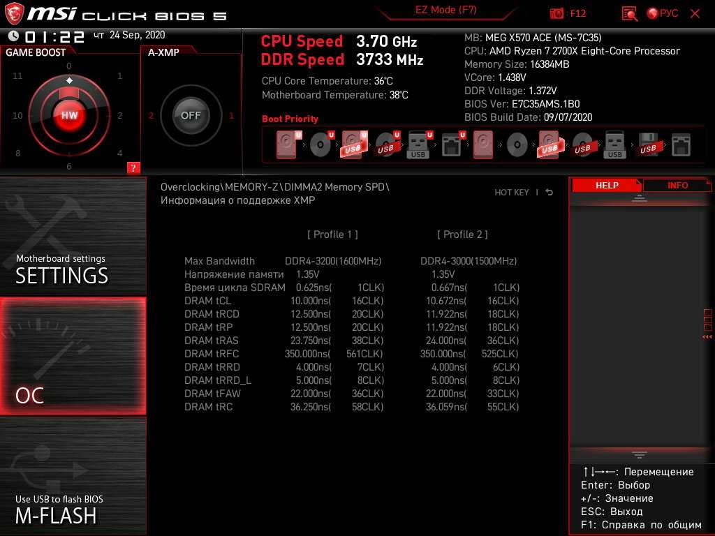 Для старта с использованием одного из XMP-профилей его необходимо принудительно выбрать в настройках BIOS материнской платы.