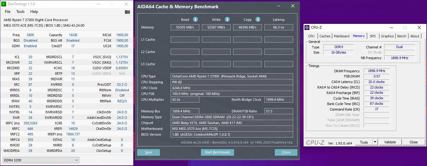 При поднятии таймингов до 20-22-22-39 и экспериментах с повышением напряжения память запустилась и на 3800 МГц, однако не прошла тест на ошибки.