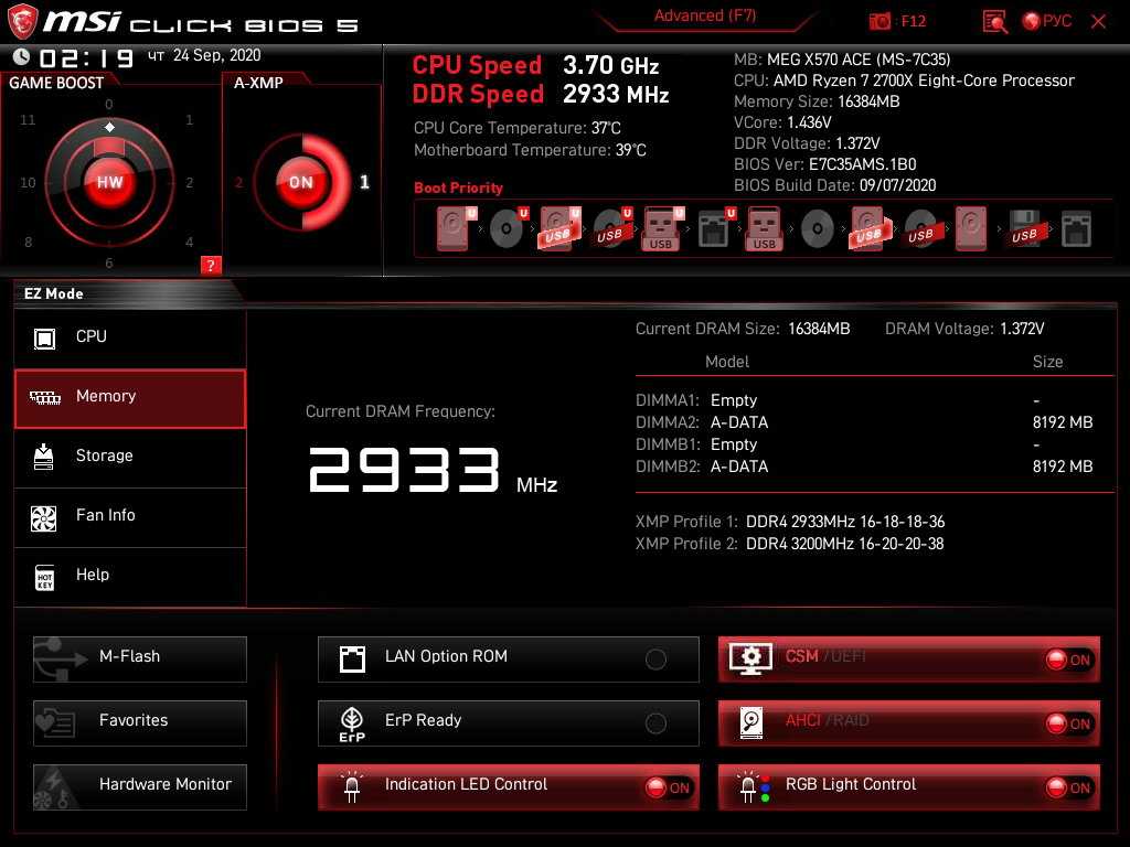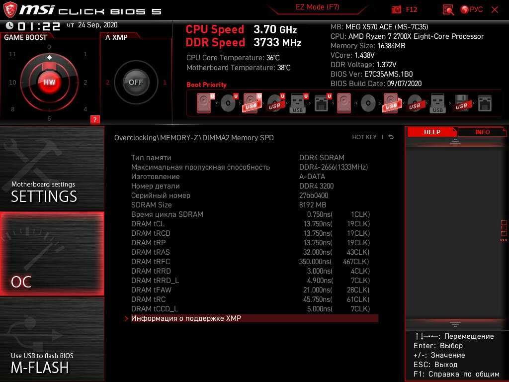 В UEFI BIOS материнской платы информация по режимам работы модулей совпадает с выгрузкой из утилит выше.