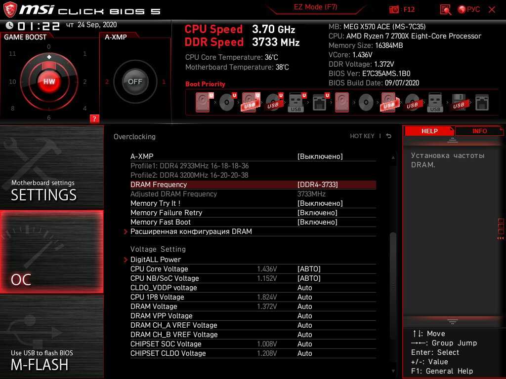А на максимальной частоте 3733 МГц мы увеличили Vdimm еще один раз, доведя его до 1,45В.