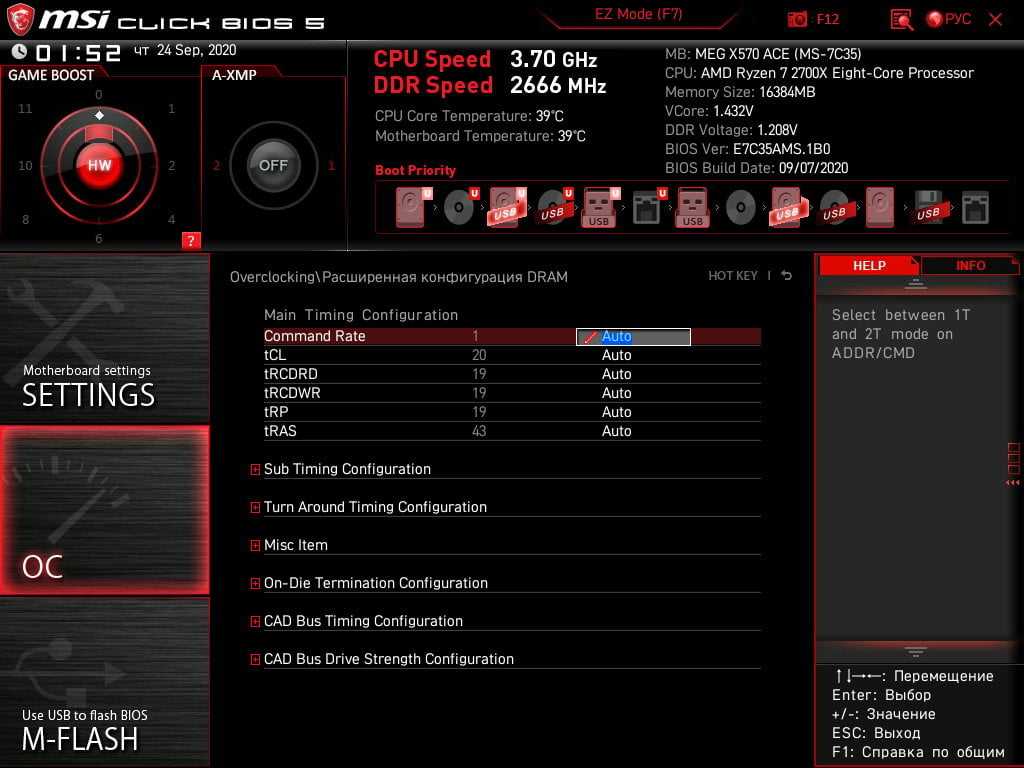 Без дополнительной настройки BIOS материнской платы запустил оперативную память в режиме JEDEC #11 с частотой 2666 МГц, таймингами 20-19-19-43 при напряжении 1,2 В.