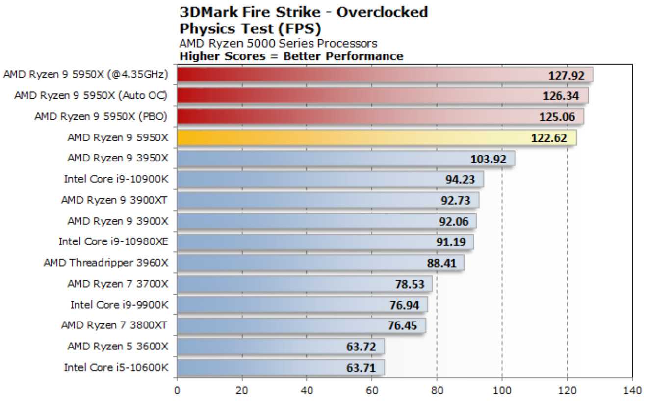 Этот тест использует только один или два потока одновременно и, следовательно, предпочтительнее высокопроизводительные процессоры Intel . Однако Ryzen 9 5900X и 5950X показали лучшие результаты для AMD и финишировали сразу после Core i9-10980XE.