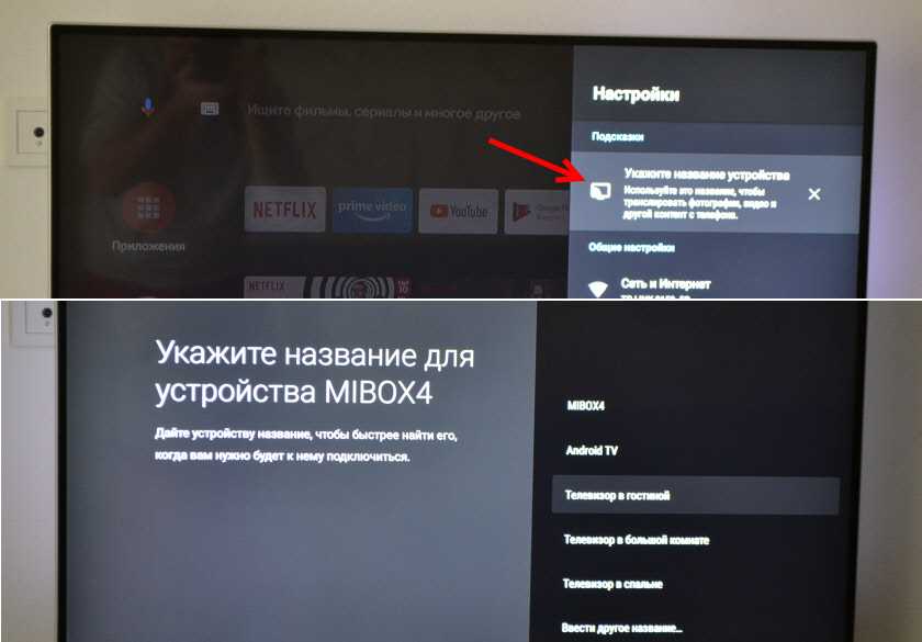 Так как приставка поддерживает Chromecast, что позволяет выводить с телефона фото, видео или музыку на телевизор через Mi Box, то в настройках будет висеть сообщение: «Укажите название устройства».