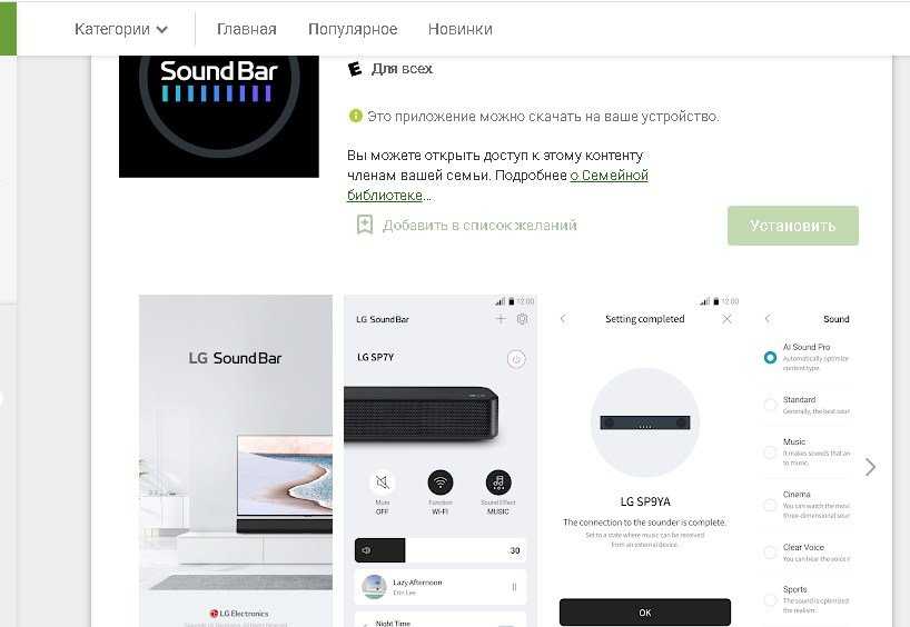 Загрузите приложение LG Saundbar на сайте https://play.google.com/store/apps/details?id=com.lge.media.lgsoundbar&hl=ru&gl=US.
