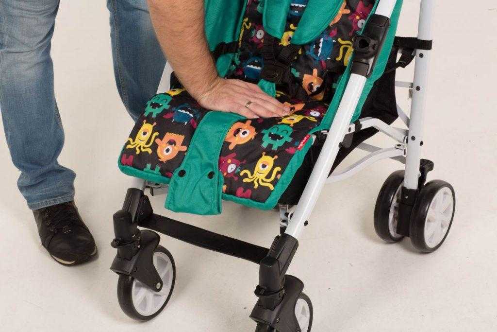 Даже при активных шевелениях ребенка коляска не опрокинется и не уедет при резкой остановке.Обратите внимание на модели с ремнями безопасности на 5 точек. В период своего роста многие дети очень активны. Такая система безопасности станет незаменимой, если малыш норовит вылезти из своего транспортного средства.Еще один параметр безопасности — защитный бампер. Хорошо, если он проходит через всю ширину посадочного места. Чтобы сажать кроху в коляску (или вытаскивать из нее) было проще, выбирайте модели, в которых бампер отстегивается.