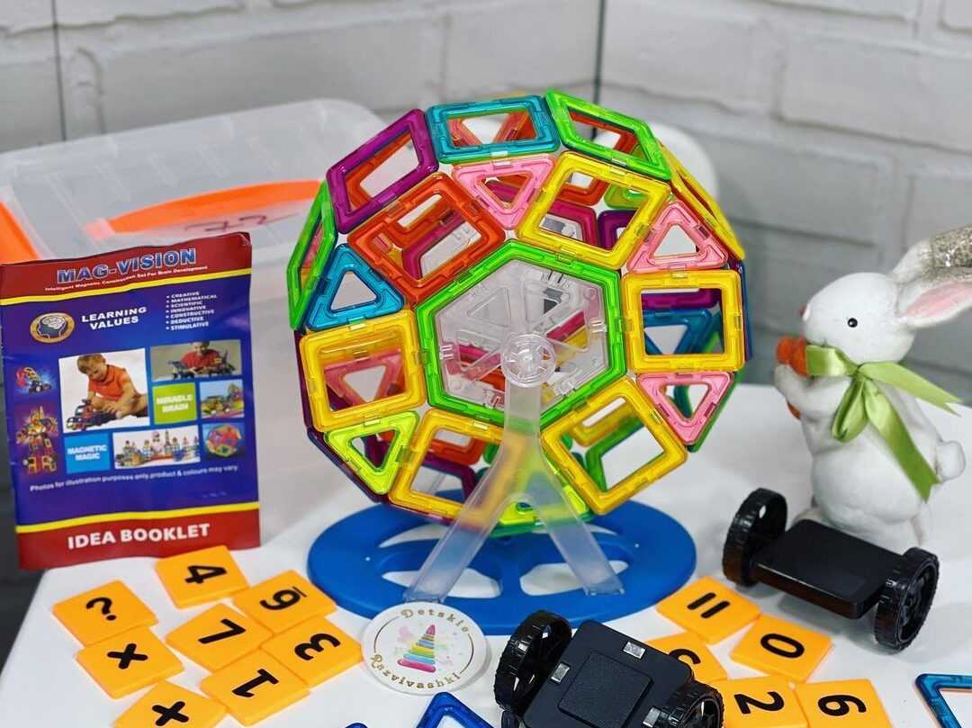 Выбирая магнитные наборы для уже взрослых детей, обратите внимание на количество деталей. Комплекты с большим количеством элементов дадут больший простор для фантазии, позволят создавать сложные объемные модели