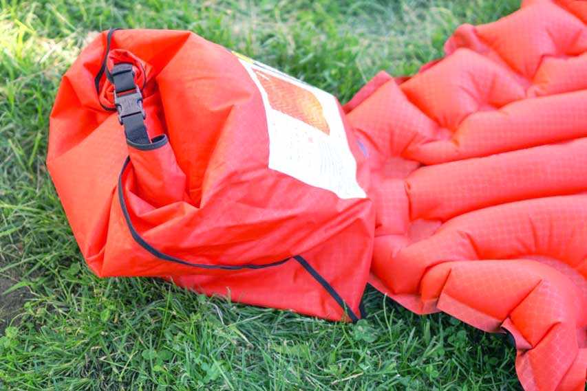 Покупая надувной коврик обратите внимание нужен ли ему насос и можно ли его накачивать с помощью гермочехла из комплекта, как ниже на фото: