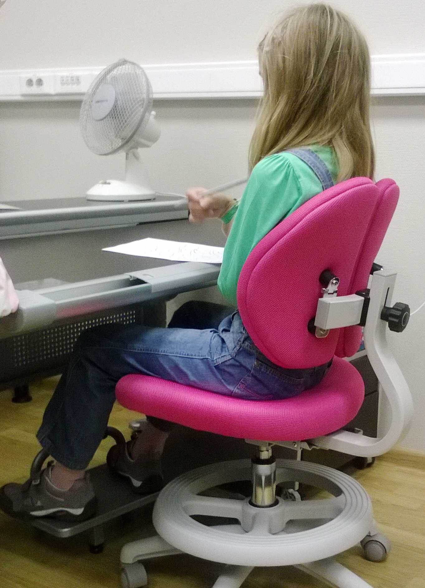 при посадке в кресло ноги ребенка должны стоять на полу, если ребенок еще мал, то потребуются подножки либо подставка под ноги;