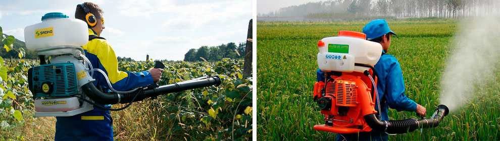 Бензиновые распылители – самые мощные. Подходят для работы на больших территориях: в садах, парках, на сельскохозяйственных угодьях. С ними можно дезинфицировать сараи, подвалы, помещения для скота и птицы. Минусы – они дорогие, шумные и неэкологичные.