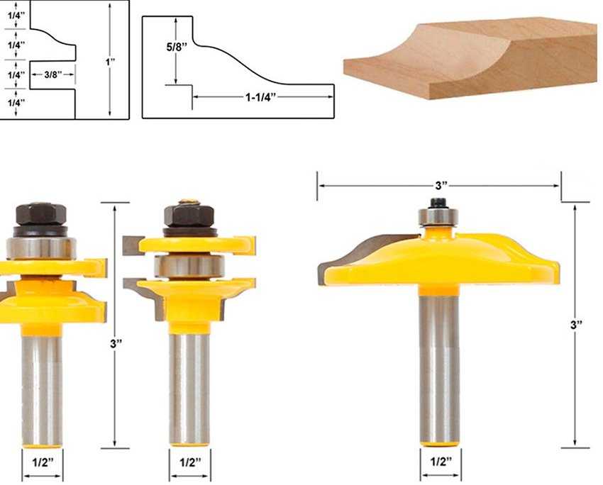 Данные фигурные фрезы еще называют мультипрофильными. В зависимости от задач мастер может использовать часть профиля оснастки или задействовать его полностью. Во втором случае потребуется устанавливать инструмент в агрегат, который имеет мощность не менее 1600 Вт.