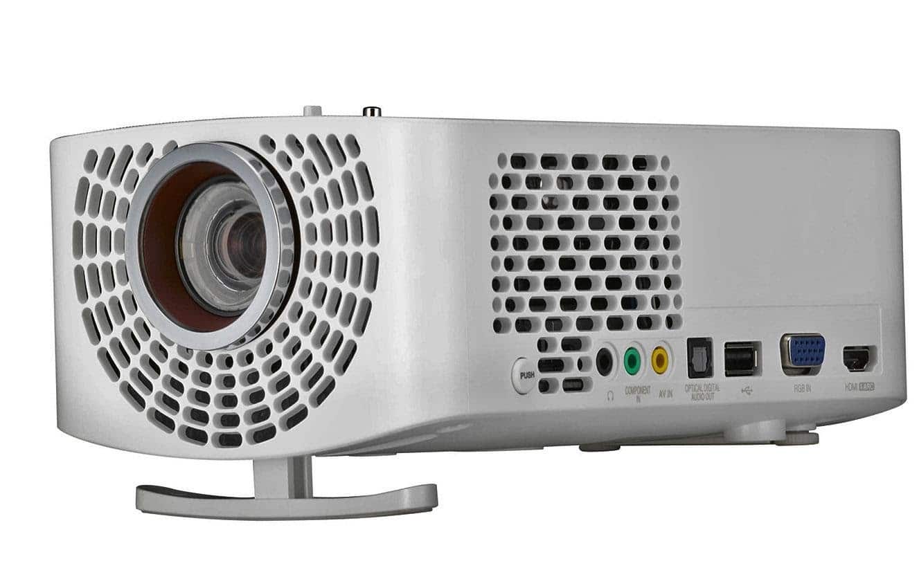 Еще один проектор с ТВ тюнером для домашнего кинотеатра с поддержкой Smart TV. Он способен выдавать картинку нормальной яркости 1400 лм, а также умеет передавать звук по Bluetooth. Короткофокусная оптическая система с легким сдвигом вверх позволяет устанавливать устройство на тумбочку или табуретку. Поддержка основных офисных форматов позволяет с ним проводить трансляцию без вспомогательных устройств. В основе модели используется практически вечный источник света, но использовать проектор вместо монитора будет неудобно из-за видимой расфокусировки в нижних углах.