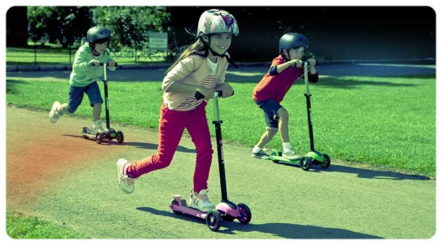 Самым безопасным и удобным на практике признан самокат с 3-х и 4-х колесами. Такие модели выпускаются для деток и взрослых. А вот 2 колеса на самокате станут уместными, если ребенком уже была освоена техника передвижения, он уверено держится при езде.