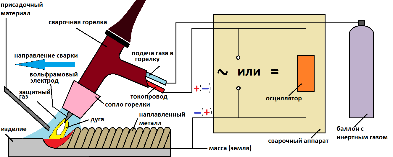 Сварщику остается вести горелку вдоль будущего шва на определенной высоте от свариваемой детали. Это обеспечивает высокую скорость сваривания и получение качественного сварного шва, благодаря защите инертным газом от кислорода воздуха. Сварочный ток может регулироваться в широком диапазоне от 30 до 250 А.