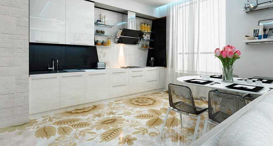 Существующий ассортимент различных цветов и рисунков для пола очень широкий. Вариантов больше, чем для керамической плитки. Что касается стоимости, то цены различаются. Они по большей части зависят от дизайна, а также от состава продукта и от бренда.
