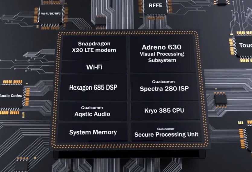 Дополнительная: 8 Мп, f/2,2, угол захвата 97 градусов - Процессор: 8 ядер, 4 х 2,5 ГГц + 4 х 1,6 ГГц, 10 нм, Qualcomm Snapdragon 845