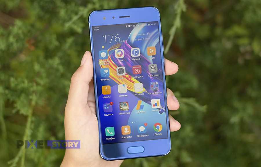 Но как бы то ни было, Honor 9 я могу смело назвать самым привлекательным смартфоном этого субренда. Вариант в синем цвете притягивает взгляд, а на ярком солнце он начинает сверкать. Задняя панель имеет сложную структуру из нескольких слоев, что и дает эти причудливые преломления, на которые приятно смотреть.