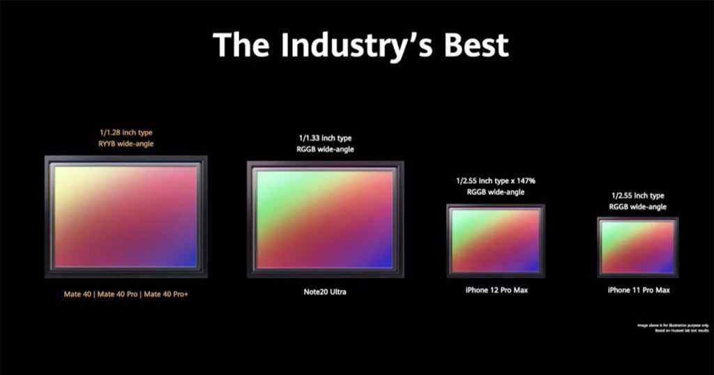 В обычном Mate 40 их три. Основной модуль как и у старших версий. Это 50-Мпиксельный RYYB-сенсор гигантских размеров 1/1.28 дюйма — самый большое на сегодняшний день среди всех смартфонов. А значит, он будет получать много света. И всё же не так много, как конкуренты, ведь прикрыта матрица весьма тёмным объективом f/1.9. Куда делись стёкла по f/1.6-1.7, пока не ясно.