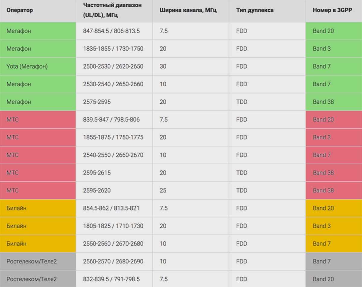 Этих бэндов хватит для работы смартфона с любым отечественным оператором связи.