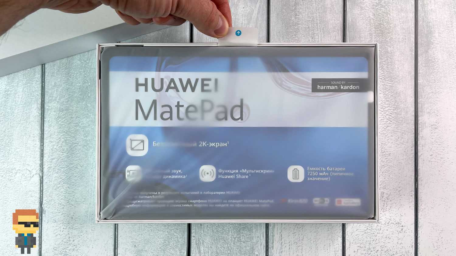 Нередко пользователю приходится подумать, как просунуть палец или «вытряхнуть» планшет из коробки. HUAWEI же предусмотрела прямоугольный язычок с закругленными углами. Достаточно аккуратно потянуть за него, чтобы достать девайс без лишних телодвижений и риска повредить коробку или даже само устройство.