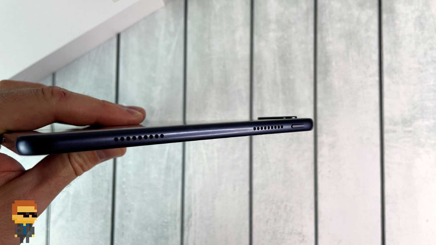 Девайс очень компактен благодаря 7,9-миллиметровым рамкам. С учетом 10,4-дюймового дисплея и корпуса с металлическим напылением, а также мощной акустики, на удивление легок — менее 0,46 килограмма. Дисплей занимает 84 процента лицевой панели.