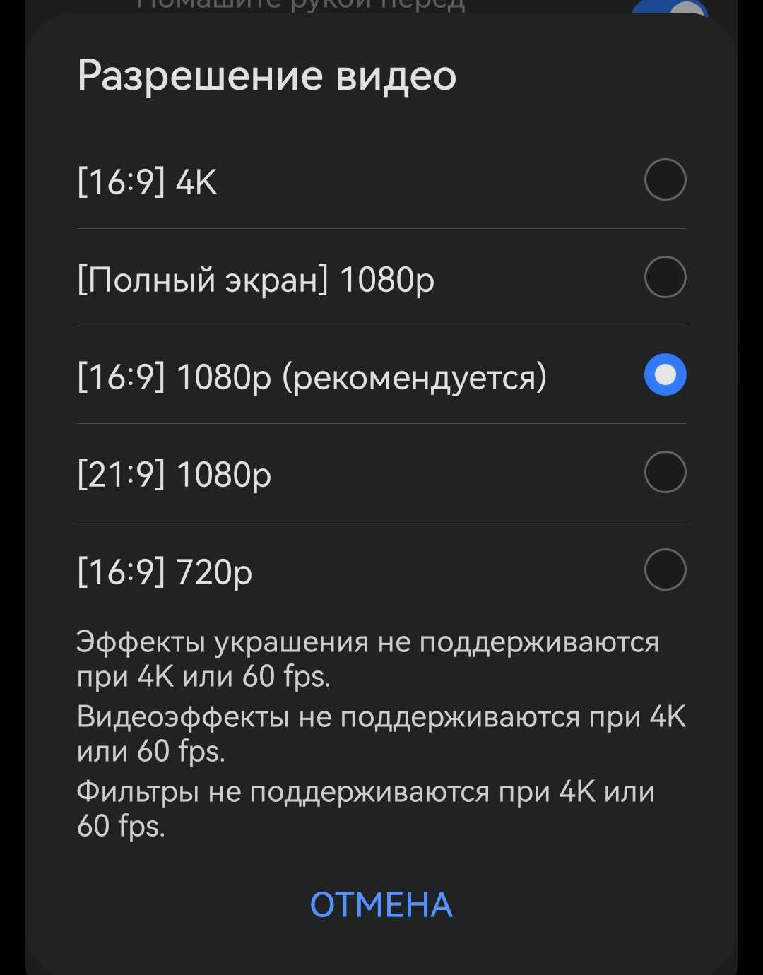 Смартфон не позволяет снимать видео с частотой кадров больше 30. Максимальное разрешение — 4К, но оно тут, скорее, для статичной картинки, поскольку отключается электронная стабилизация. При этом сам смартфон рекомендует вести съёмку в 1080p: