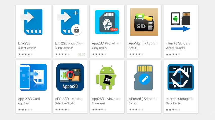- Link2SD – задействуют для переноса ПО между внутренним и внешним накопителями, последующая работоспособность приложения не гарантируется, Root-права не требуются;
