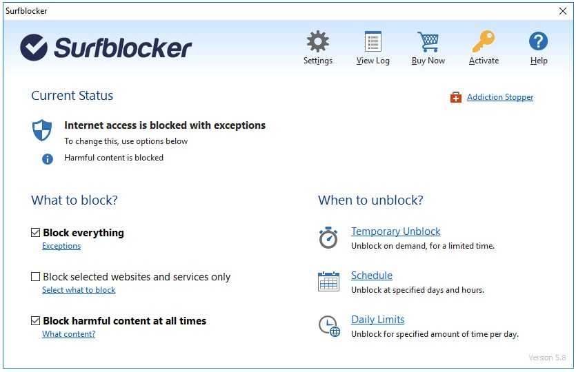 По умолчанию Surfblocker будет блокировать вашим детям доступ к опасному и нежелательному контенту. Также вы сможете вручную создать белый список сайтов и адаптировать его под потребности ребенка. Вы даже сможете защитить паролем доступ в Интернет в определенные часы — а такая возможность встречается редко.