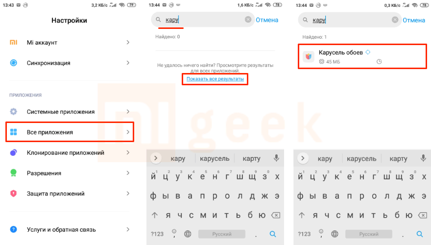 - Дальше зайдите в настройки снова – «Все приложения» и найдите «Карусель обоев»;