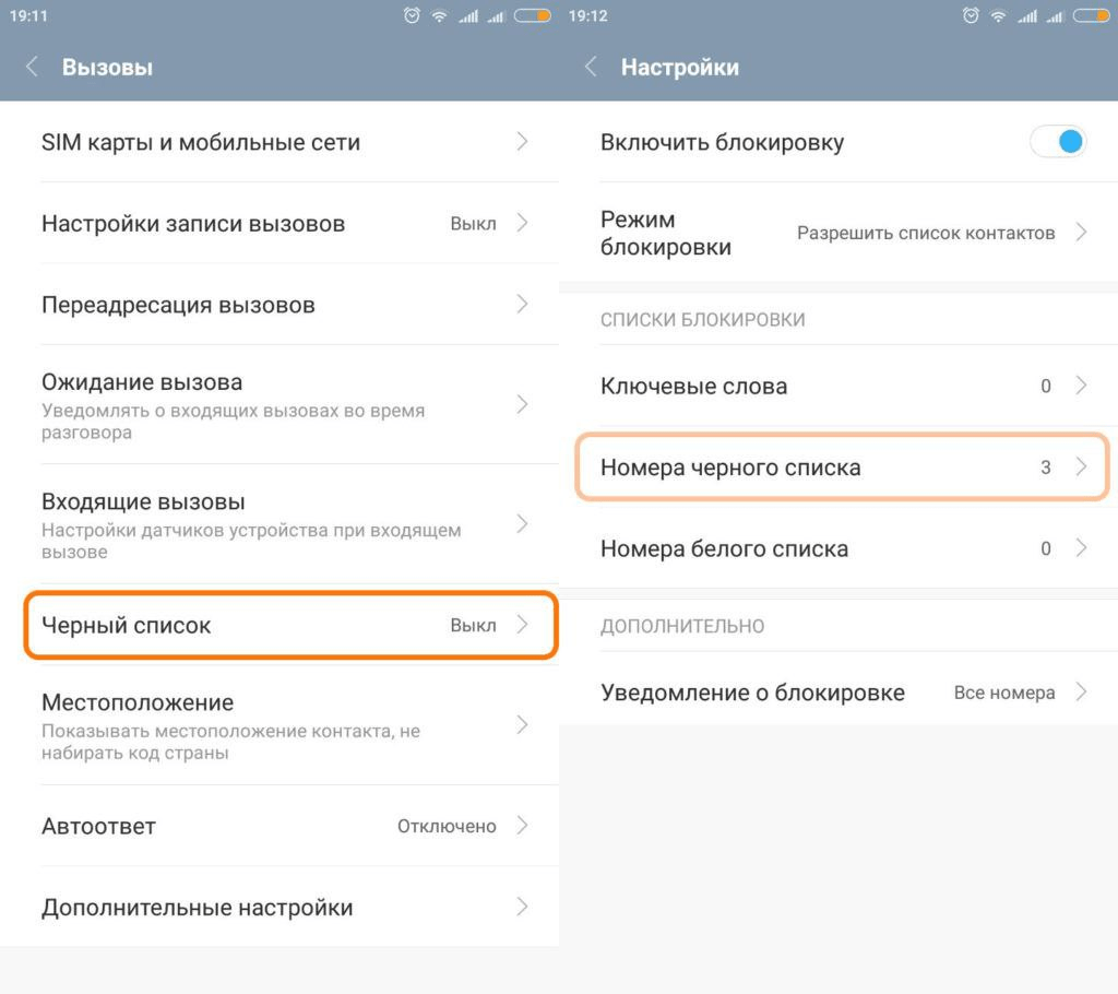 Как говорилось ранее, в зависимости от операционной системы и модели телефона расположение раздела «Черный список» может отличаться. Среди марки смартфонов, самыми популярными являются Ксяоми, Самсунг. Стоит рассмотреть алгоритм просмотра на этих моделях.