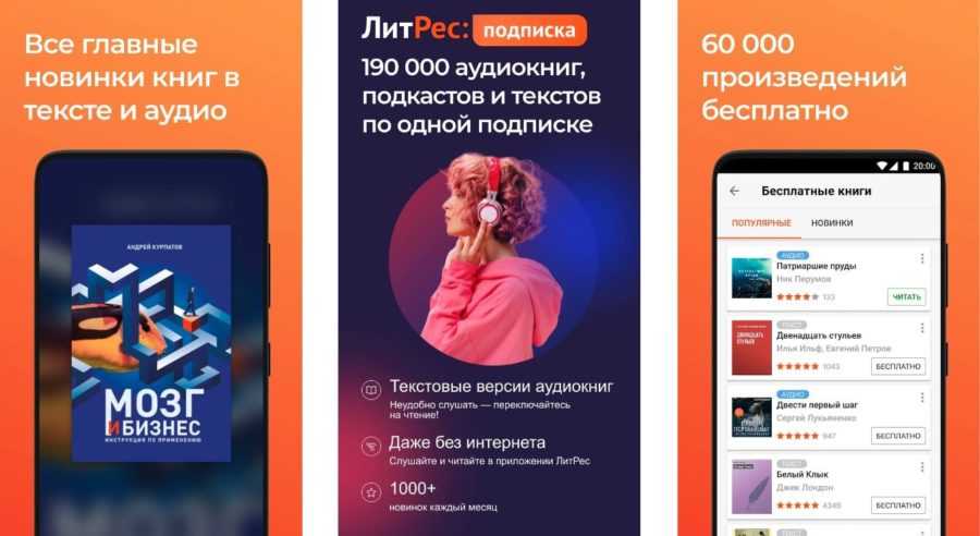 | Bookmate | Bookmate | 4.1 и выше | От 35,71 до 8990 рублей | + 1 млн. |