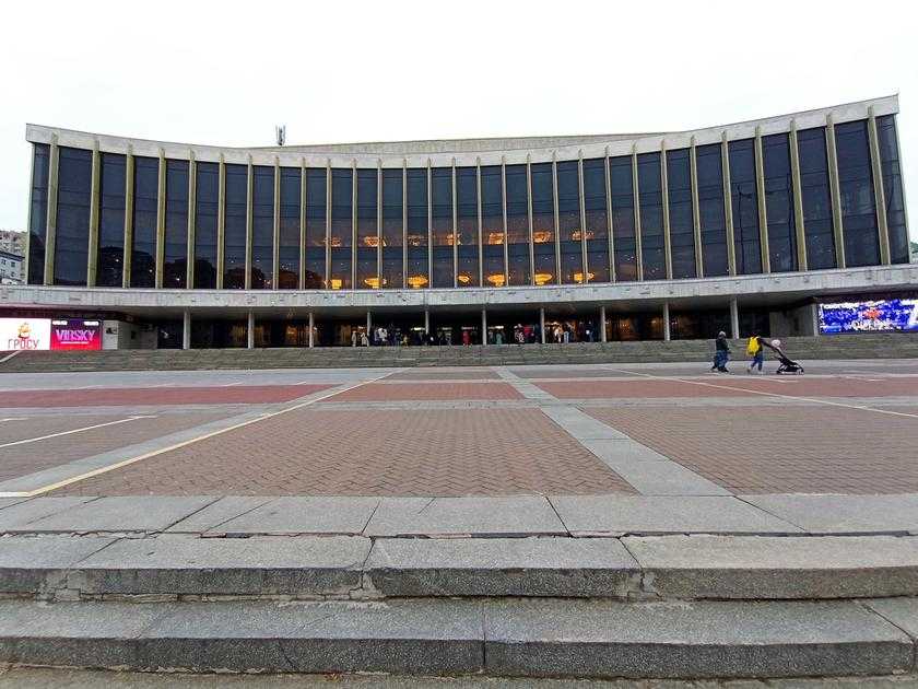 Здание, которое не уместилось в кадр при съемке на основную камеру, при помощи «ширика» удалось сфотографировать полностью на том же самом расстоянии о него.