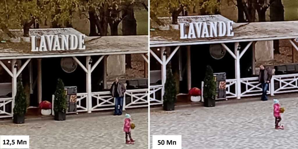 Теперь давайте посмотрим, насколько отличается качество фото с настройками «по умолчанию» (12,5 Мп) и в продвинутом 50-мегапиксельном режиме. В качестве эксперимента владельцы этого телефона сначала сделали 2 снимка одного и того же объекта в разных режимах. А затем увеличили полученные фото, чтобы рассмотреть на нем мелкие детали. Вот что у них вышло.