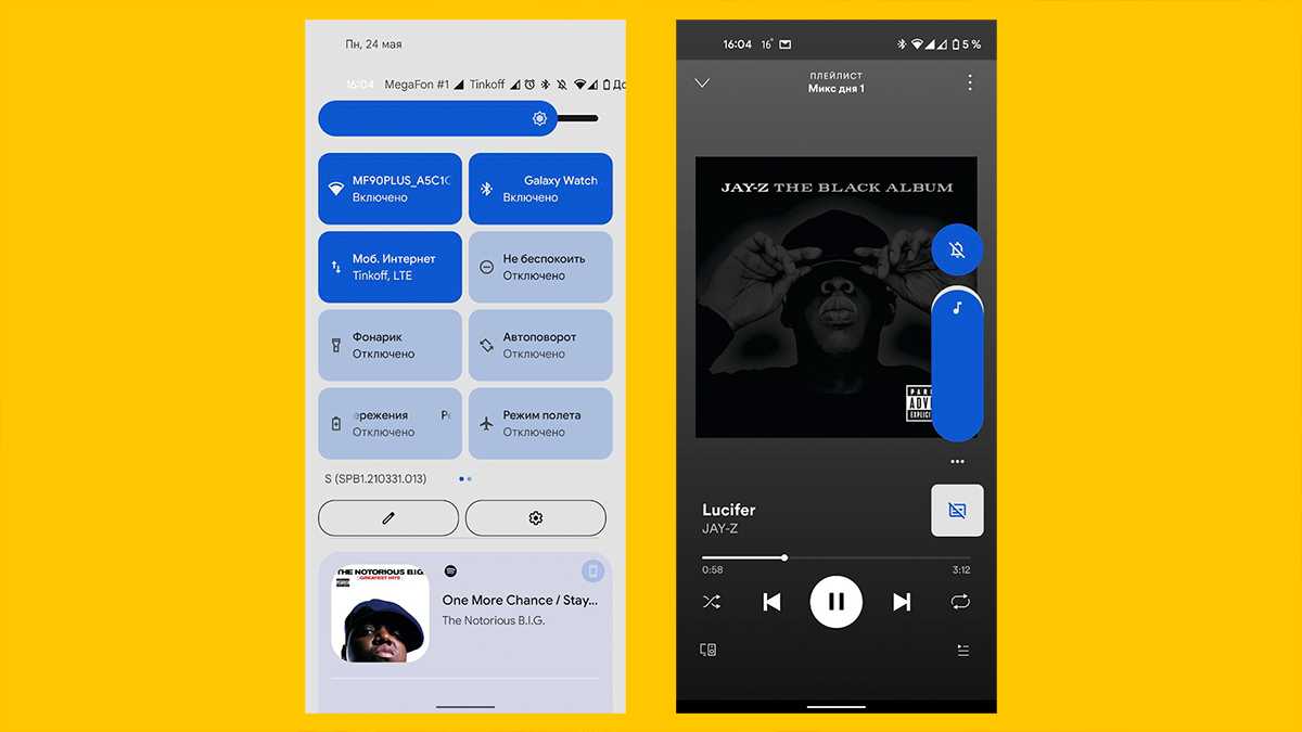 Ползунок регулировки громкости тоже стал больше, а по своей форме теперь напоминает таковой в iOS 14. Но в остальном с ней Android 12 имеет мало чего общего.