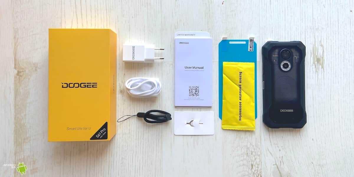 Мы открываем коробку DOOGEE S61 Pro, чтобы увидеть и рассказать вам все, что мы нашли внутри. На переднем плане, как обычно, сам терминал, о чем мы подробно расскажем ниже. Кроме того, мы также находим общие элементы, такие как зарядный кабельИ Зарядное устройство, хотя последнее встречается все реже.