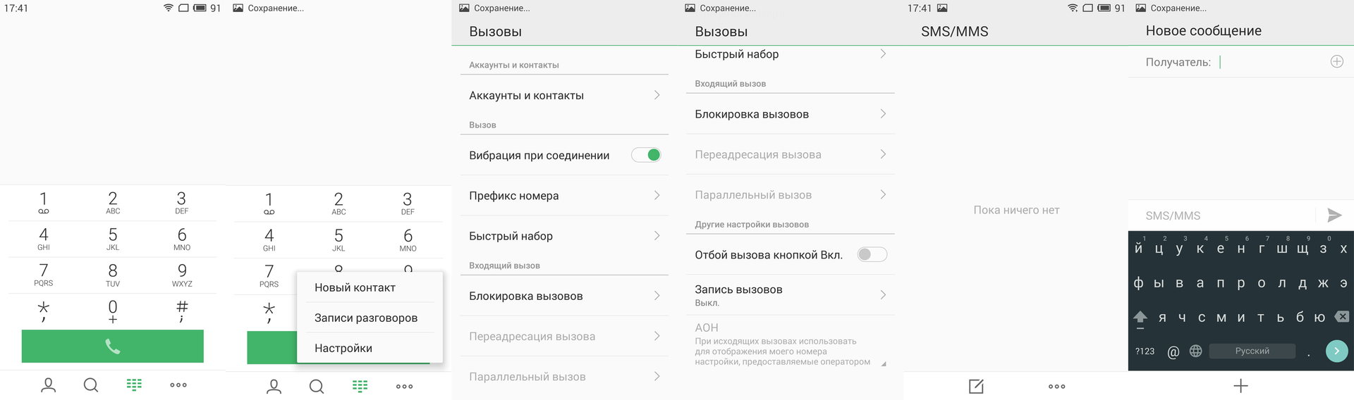Функционал приложения телефона и SMS-сообщений такой же, как у старших моделей, ничего не урезано. Штатно можно записывать разговоры.