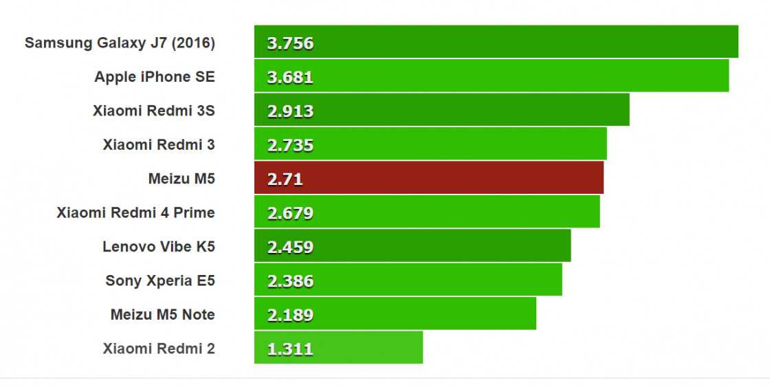 | Meizu M5 Note | 0.614 | 463 | 754 |