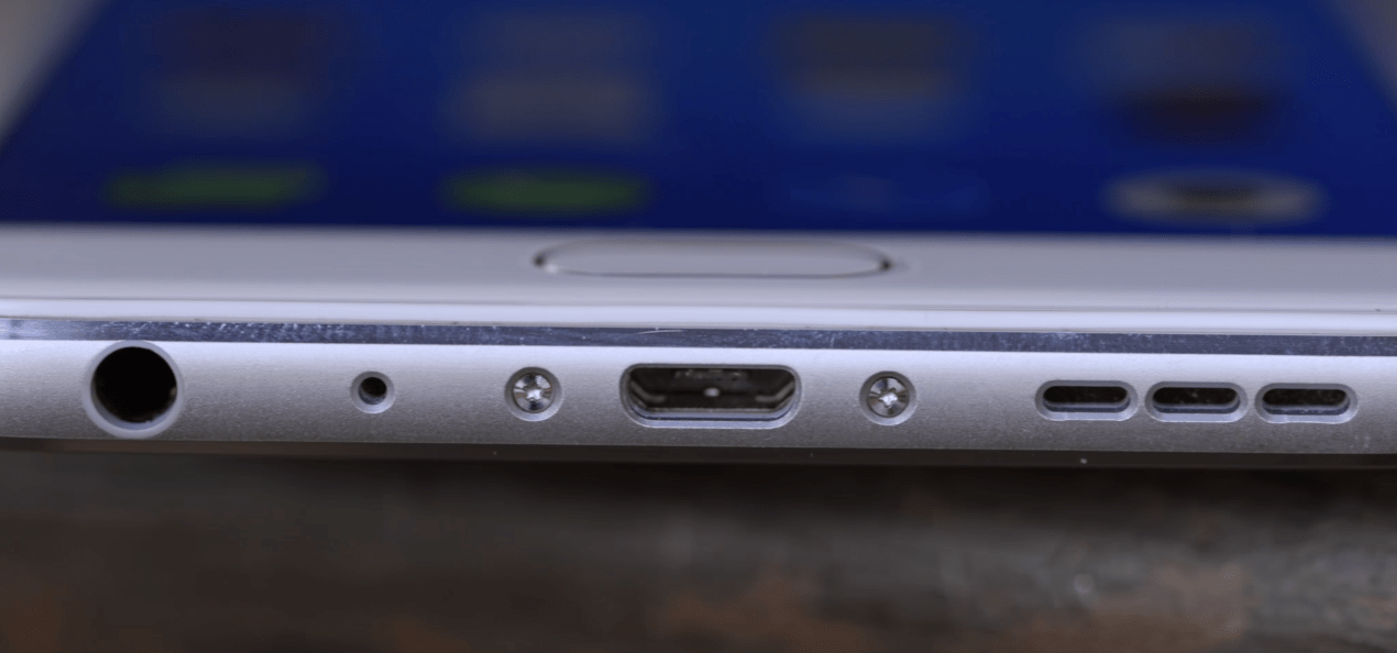 Боковые торцы M5 Note украшены аккуратной фаской, которая смотрится крайне эффектно. Верхний торец лишен функциональных элементов, на нем расположился только второй микрофон для шумоподавления. Снизу находится порт Micro USB, решетка основного динамика и 3.5 мм разъем под наушники. Все отверстия выполнены аккуратно, нареканий на качество сборки нет.
