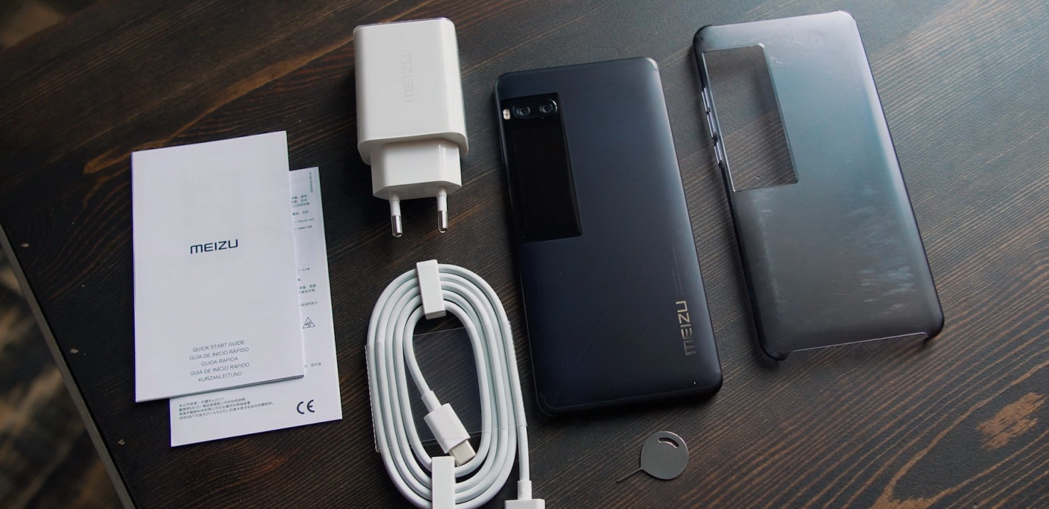 Производитель изменил подход к оформлению коробки Мейзу Про 7, который долгое время оставался неизменным. Теперь смартфон и комплектация к нему кладутся в пластиковую упаковку, на торце которой мы видим фирменный логотип Meizu. Это определенно пошло на пользу репутации компании, ведь первое впечатление о продукте складывается уже по его коробке, а она получилась очень презентабельной. Внутри в отдельном боксе лежит сетевой адаптер, шнур USB Type-C, металлическая скрепка извлечения лотка СИМ, накладка на заднюю панель и документация. Содержание упаковки крепится на своих местах.