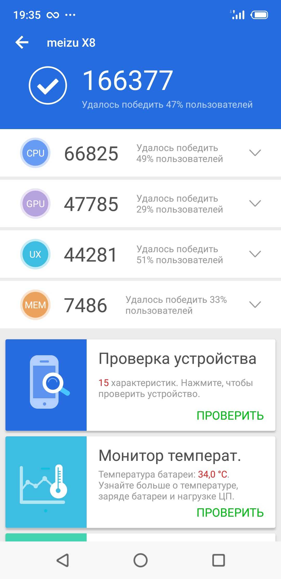 Получается, что максимальная конфигурация X8 стоит слегка дешевле, чем Meizu 16, при той же памяти и идентичном процессоре. Но это объяснимо, ведь здесь сканер отпечатка не экранный, а на задней панели. Да и камеры в теории хуже.