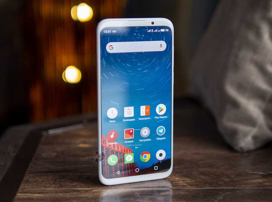 Meizu не раскрывает технологию производства дисплея, но из контрастности 1500:1 очевидно, что это IPS. Разрешение при диагонали 6,2″ составляет 2220х1080 точек, это даёт плотность пикселей 401 ppi и соотношение сторон 18,5:9 (как у Galaxy S8/S9, но там нет выреза). Сенсор встроен в слой пикселей (In-Cell Touch), а яркость составляет 430 нит. Немного, но мне хватало на улице. Минимальный порог очень низкий, пользоваться телефоном в темноте комфортно. Чёрный цвет непривычно глубокий для IPS-панелей, белый тоже хорош. Цветопередача естественная. Инверсий нет даже под самыми сильными наклонами. В общем, на дисплее Meizu не сэкономила.