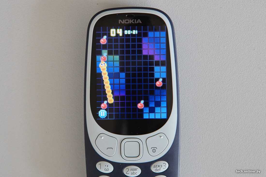 Что касается развлечений, то на Nokia 3310 есть хорошо всем знакомая игра “Змейка”. Сколько ее не пытались переделывать, добавляя новые графические элементы, старая “Змейка” пока остается наиболее быстрой и интересной.