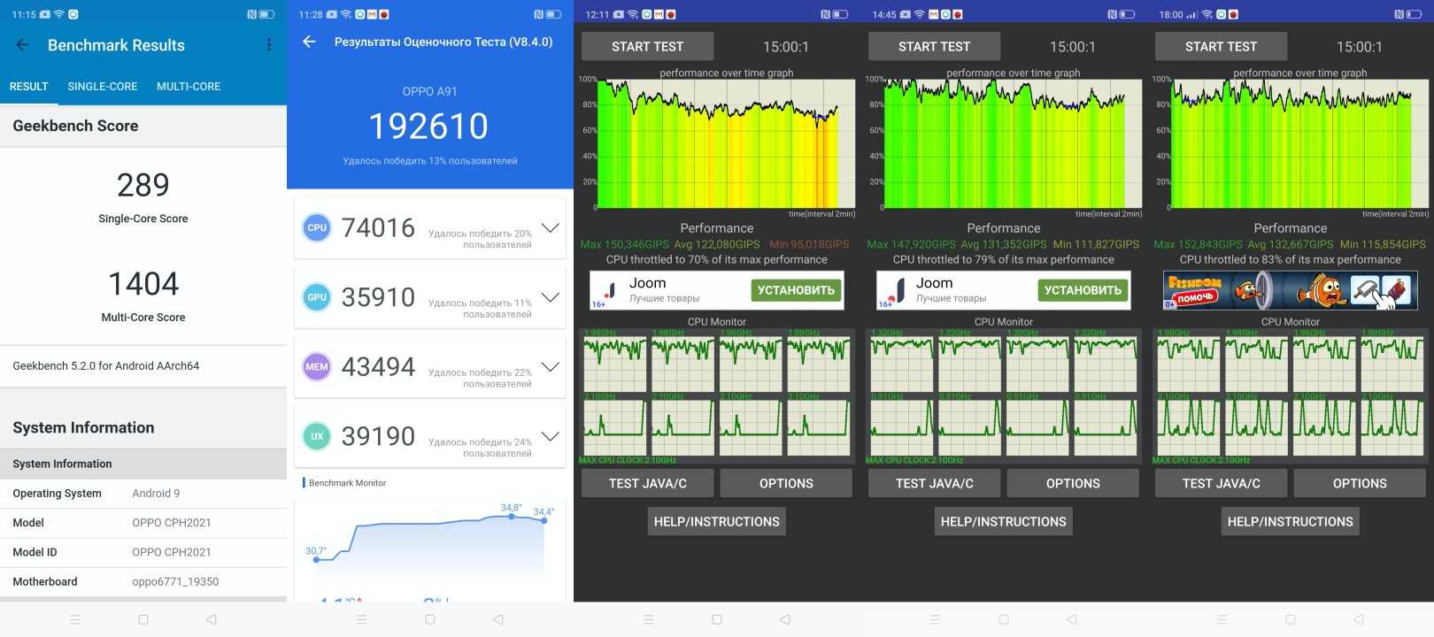 Начинка такая: процессор MediaTek Helio P70, он же MTK MT6771V, 8 ГБ оперативной памяти и 128 ГБ встроенной. Процессор не любит длительные бенчмарки с проверкой на стрессы, под нагрузкой производительность прилично проседает. Если же от искусственных замеров перейти на игры, то ситуация будет аналогичной: на низких настройках графики можно рубануться в PUBG, но от «середнячков» такого уровня всё же хочется большего.