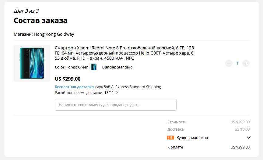 Какие могут быть вопросы к такому щедрому до характеристик и возможностей аппарату? Бегом покупать! Вот ссылка на проверенного мной и, уверен, многими из вас продавца. По ней сможете купить смартфон за $249.99. Для этого необходимо выбрать цвет, комплектацию и нажать на кнопку «Купить сейчас». Далее на страничке подтверждения заказа в разделе оплаты указываем какой-нибудь левый способ оплаты (например, Webmoney) — нам нужно сделать заказ, пока не оплачивая его.