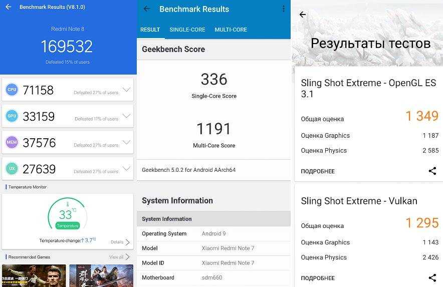 Результаты Redmi Note 8 в AnTuTu, Geekbench и 3D Mark
