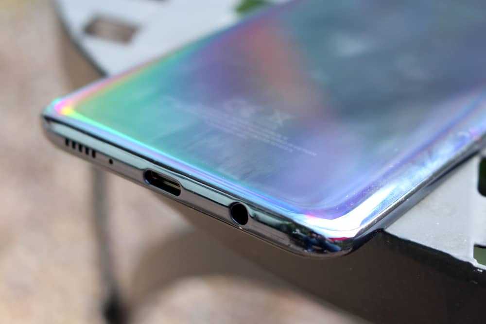 По нижнему краю телефона находится разъем для наушников 3,5 мм, порт USB-C, а также решетка динамика. Если говорить о динамике, то здесь уровни громкости значительно лучше, чем на M30, а воспроизведение звука звучит намного лучше. Несмотря на определенный фокус на более высоких частотах, есть только намек на низкие частоты, и вы можете безопасно увеличить громкость, если хотите.